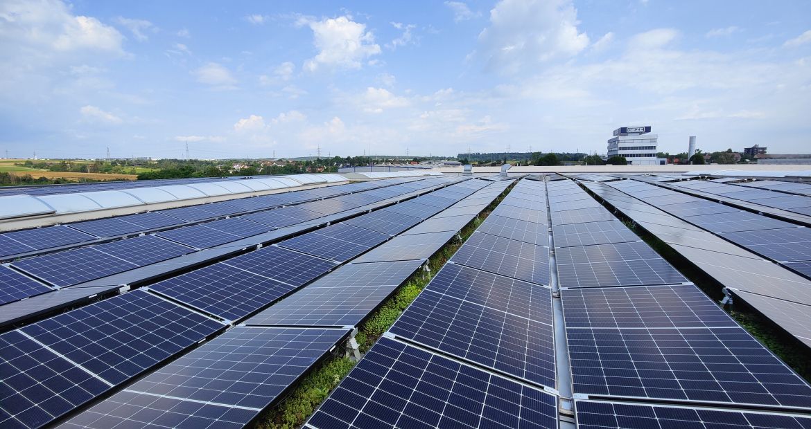 Geze setzt in Deutschland auf 100 Prozent Ökostrom und erzeugt zusätzlich Solarstrom auf seinen Produktions- und Lagergebäuden in Leonberg. Foto: Geze GmbH