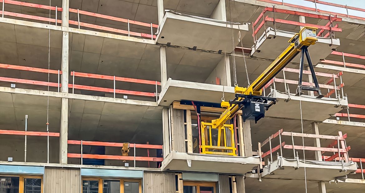 Die Produktivität der individuellen Heavydrive Komplettlösungen hat sich im vergangenen Jahr bei vielen Projekten gezeigt, beispielsweise am Kreativquartier im Münchner Norden – einem Areal, das Wohnen und Arbeiten mit Kunst, Kultur und Wissen verbinden soll. Für die Montage der vorgefertigten Balkonelementen inklusive der verglasten Türflügel kamen die speziellen Heavydrive Anlagen zum Einsatz.