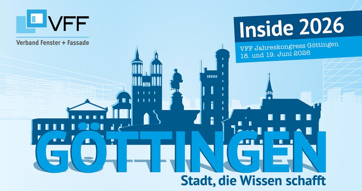 Vom 18. bis 19. Juni 2026 trifft sich die Fenster- und Fassadenbranche in Göttingen zu ihrem großen Branchentreffen, dem Jahreskongress „Inside 2026“ des Verbandes Fenster + Fassade (VFF). Mit einem hochkarätigen Programm, inspirierenden Locations und exklusiven Networking-Möglichkeiten setzt der Kongress Maßstäbe. Die Anmeldung ist ab sofort möglich; bis zum 31. März 2026 gilt der Frühbucherpreis.