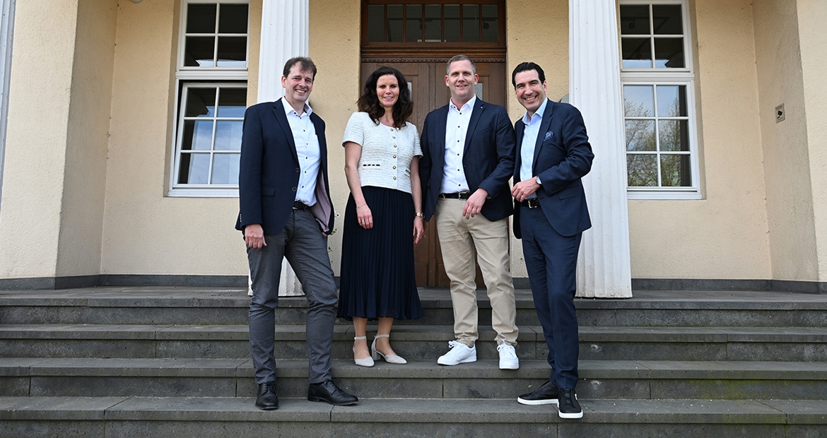 v.l.: Bernd Hillbrands (Managing Director, Forterro), Miriam Berzen (Geschäftsführerin Klaes), Lars Klaes und Marcus Pannier (President, Forterro) nach der Unterzeichnung. Foto: Klaes