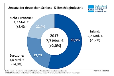 Die deutsche Schloss- und Beschlagindustrie sei gut in das Jahr 2018 gestartet und schaue zufrieden in die Zukunft, so der Fachverband Schloss- und Beschlagindustrie e.V. (FVSB). Anlass dazu gäben die positiven konjunkturellen Rahmendaten und die aktuelle Baukonjunktur. Die vom Statistischen Bundesamt für das Jahr 2017 veröffentlichten amtlichen Zahlen würden dies unterstreichen.