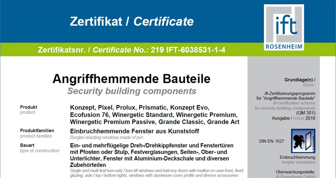 Alle Kunststofffenstersysteme von Oknoplast sind vom Institut für Fenstertechnik in Rosenheim jetzt in den offiziellen Widerstandsklassen RC 2/RC 2 N zertifiziert worden. Bereits 2016 ließ das Familienunternehmen seine beiden Hauptabsatzprodukte in diesen Widerstandsklassen vom ift zertifizieren und nahm damit seinerzeit schon eine Vorreiterrolle unter den polnischen Importeuren ein. Jetzt ließ Oknoplast auch alle anderen Fenstersysteme zertifizieren.