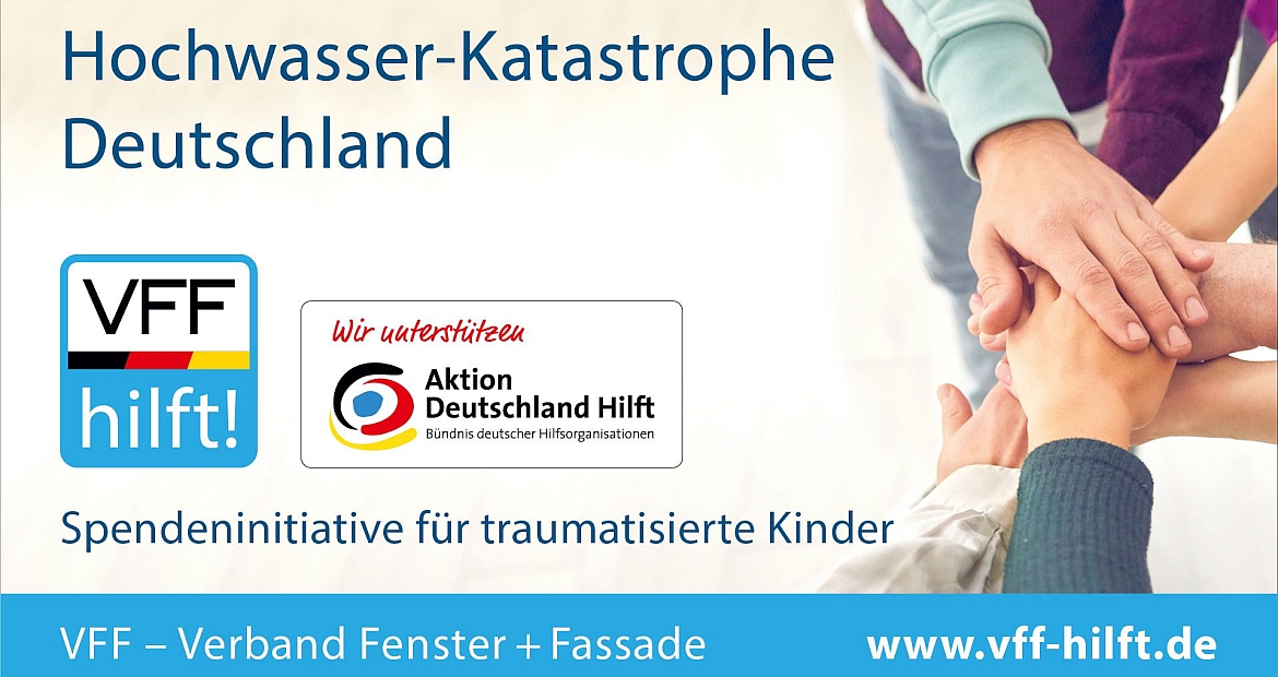 Nach gründlicher Vorbereitung hat der Verband Fenster + Fassade (VFF) jetzt die Ankündigung von Verbandspräsident Helmut Meeth vom Jahreskongress 2021 in Berlin, die Opfer der Flutkatastrophe mit einer eigenen Aktion zu unterstützen, in die Tat umgesetzt. In Zusammenarbeit mit der „Aktion Deutschland Hilft e.V. – Bündnis deutscher Hilfsorganisationen“ hat der VFF ein passendes Projekt gefunden.