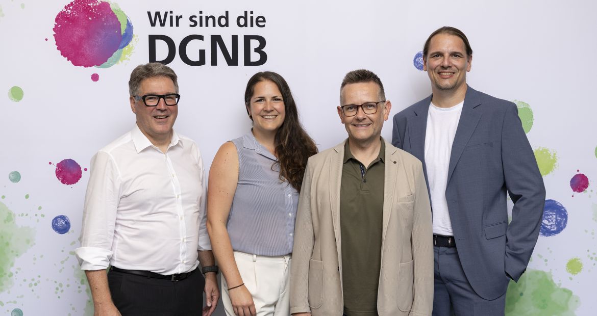 V.l.: Johannes Kreißig (Geschäftsführender Vorstand DGNB e.V. und Geschäftsführer DGNB GmbH), Maresa Schmid (Leiterin DGNB Akademie), Dr. Jochen Peichl (CEO ift Rosenheim) und Michael Breckl-Stock (CTO ift Rosenheim).