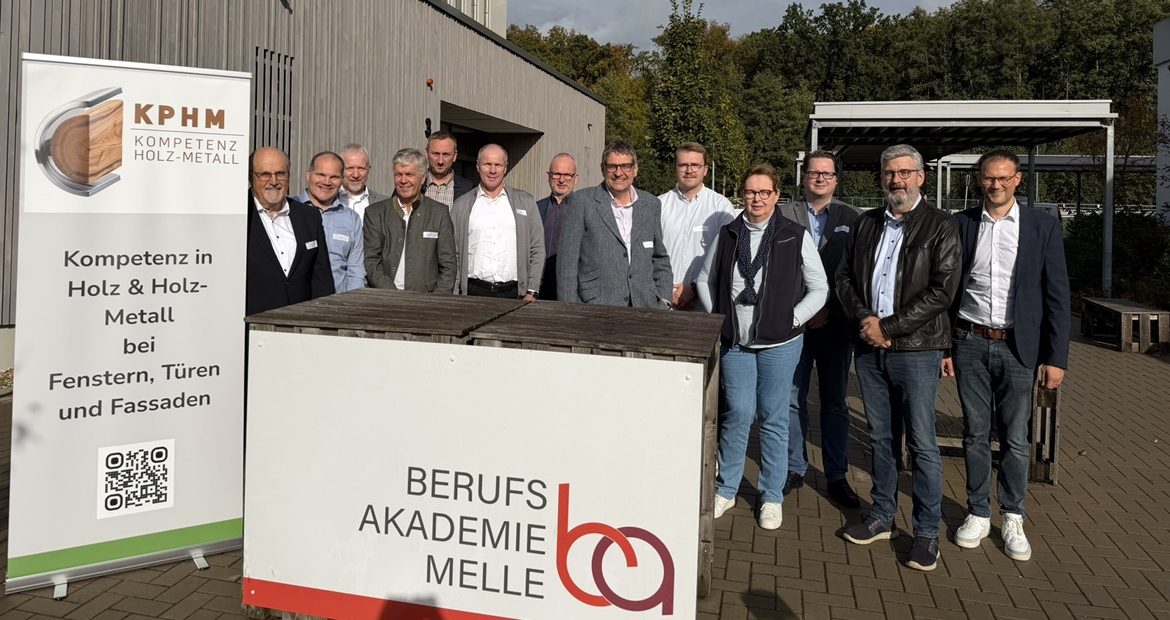 Am 23. Oktober 2025 trafen sich Unternehmer und Führungskräfte der produzierenden Betriebe von Holz- und Holz-Metall-Fenstern, -Türen und -Pfosten-Riegel-Fassaden zu einem Erfahrungsaustausch in exklusivem Kreis. Aus Anlass des 25-Jahre-Jubiläum der Berufsakademie Melle hatte KPHM (Kompetenz Holz-Metall) zu der Veranstaltung nach Melle eingeladen.