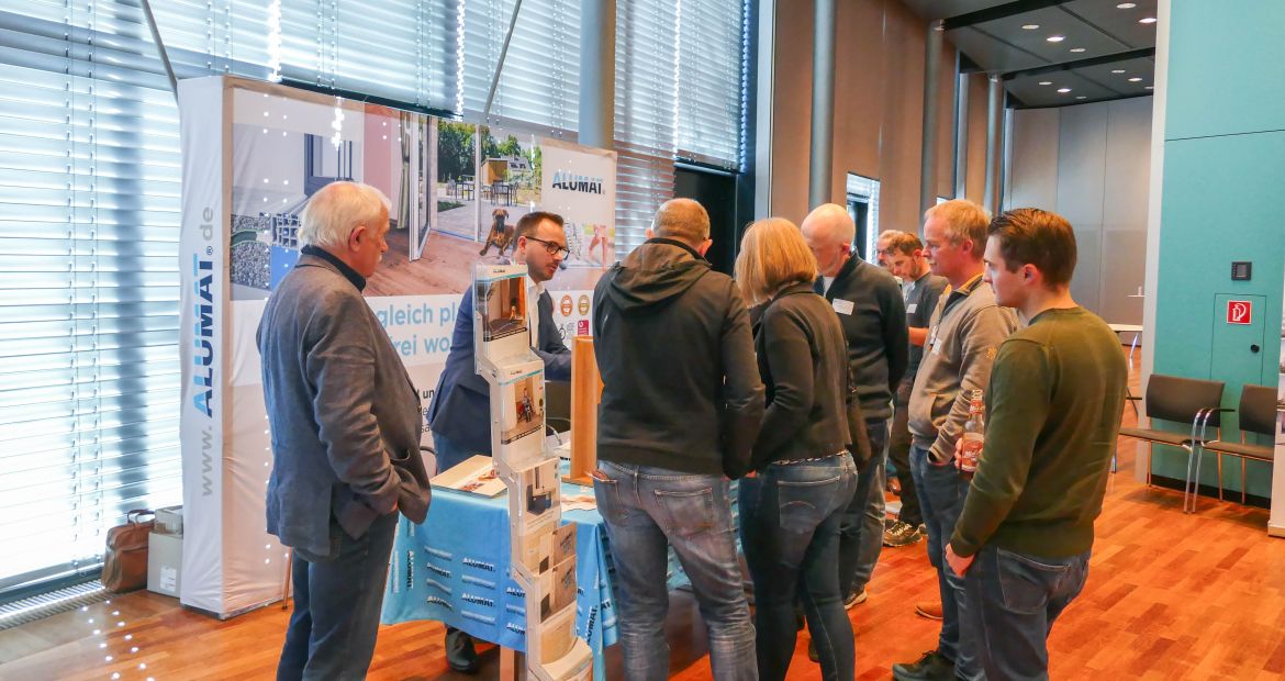 Die einzelnen Stände der gastgebenden Unternehmen (hier exemplarisch Alumat) erfreuten sich großes Interesse bei den Teilnehmenden. Foto: bauelemente bau