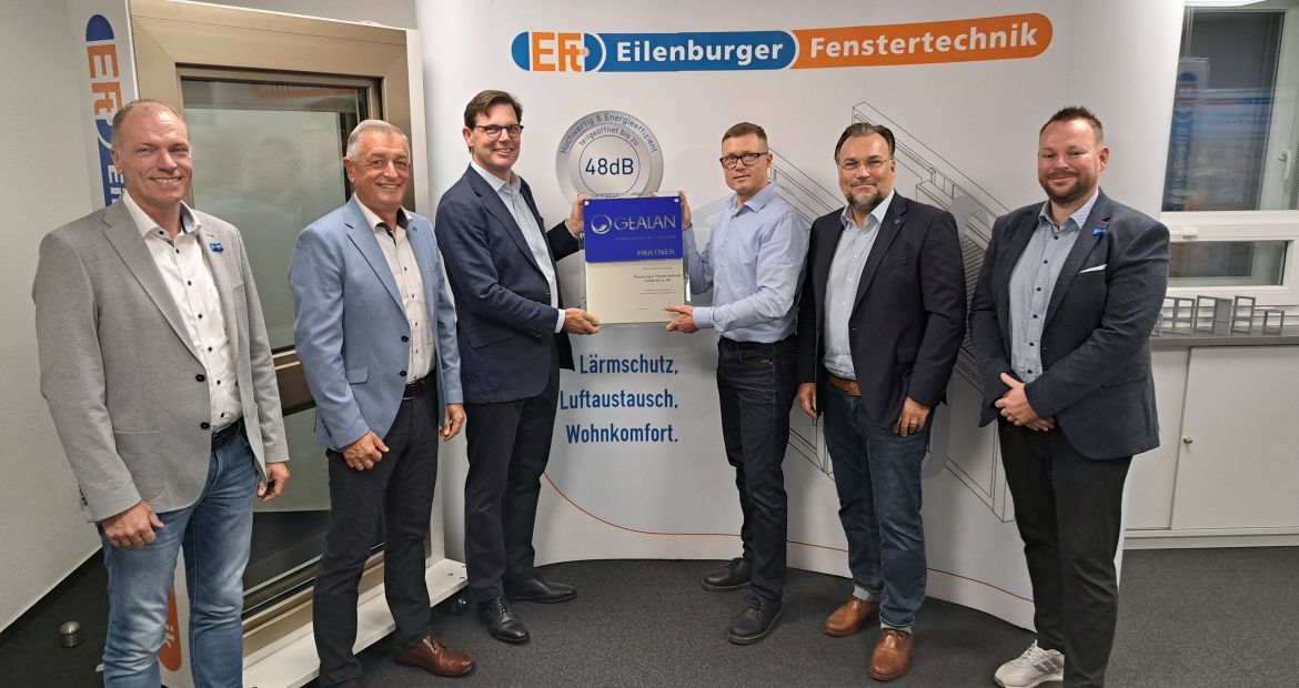 Gealan und Eilenburger freuen sich über die Zusammenarbeit (v.l.): Markus Kuhl-Grahn, Thomas Steingraeber, Wolf von Trotha, Torsten Schuster, Stefan Schramm und Marcello Moron. Foto: bauelemente bau